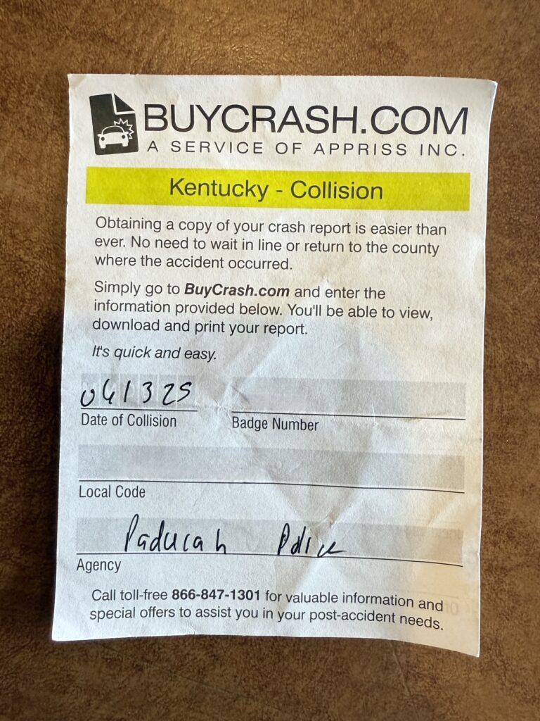 Sometimes the information you’re given is not correct and you may have difficulty obtaining the report through the BuyCrash.com website. If you were injured in a crash, through no fault of your own, Saladino & Schaaf can assist you with getting a copy of the report. Call us 24/7 at (270) 444-0406.